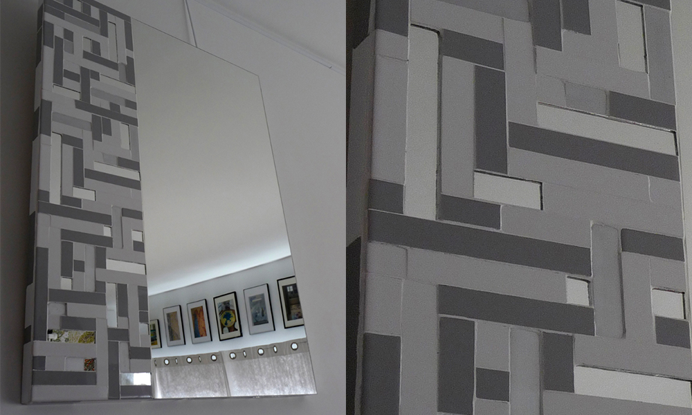 Un miroir, dont la forme, l'assemblage et le jeu des matières créés peuvent se décliner à l'infini...